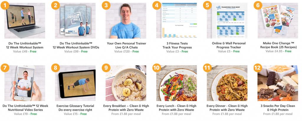 As an example if you want to follow the 5 day plan with weekends off, the weekly cost will be £60, if you want to do The Unthinkable for 6 days a week with just one cheat day, the cost is £69 per week.